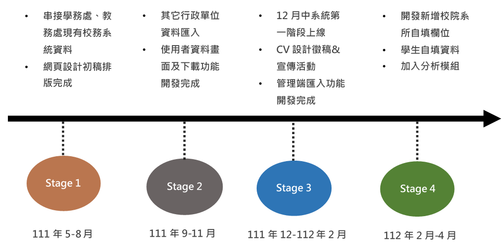 1. NYCU 學涯網未來將分階段陸續開放其他功能,如: CV 自行調整配置、系所自訂欄位資料、畢業距離進階功能、學生自行輸入的欄位…等,持續優化平台的功能,並滾動式調整,期望建置出全新、好用、與可親的平台。